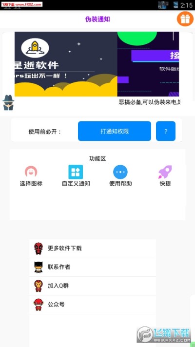 手机伪装通知栏软件能够伪装手机顶部通知,恶搞必备,大家可以选择很多图标,比如手机来电、qq消息、wx消息、各种软件弹窗消息等等,非常多哦。