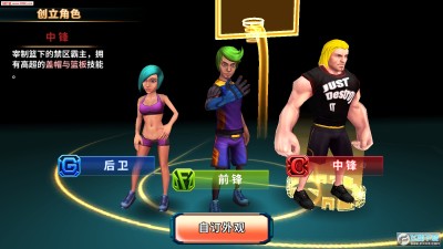 2、在游戏开始时,我们可以从头开始创建我们的玩家。第一件事就是选择你在团队中的角色:前锋、后卫、中锋。一旦完成,我们可以通过选择几种类型的发型,工具包,肤色和靴子来定制其外观。