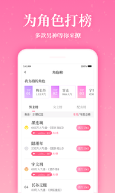 --角色打榜:为角色打call,多款男神、女神在线等撩,谁是你最心仪的TA~