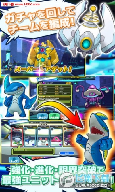 玩家所指挥的宇宙人有着四种形态的级别区分:动物型,人型,机械人,异型。他们各自的基本特征都根据形态的不同而不同,在其中也存在着属性相克。编成队伍中最多有5个人,还有另外一个是来自其他玩家的支援。