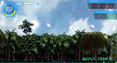 机装猎兵是Dracue Software公司制作的一款2D通关类的机甲战斗游戏,游戏采用的是类似于1990年代的画面风格,虽然略显复古,不过战斗依然让人热血沸腾。游戏的音效以及音乐是一大亮点,九十九百太郎和山下绢代将带给玩家们盛大的音乐演出飨宴。