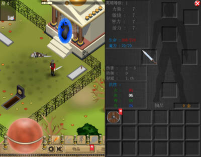 在城里面有两个摊位,一个是卖装备的商人,一个是卖道具的商人。道具除了洪水与蓝水外,还有白水和黑水,这两个药水可以额外增加一点属性点或技能点,準备好了之后可以再点传送门就会回到刚刚传送的地方。