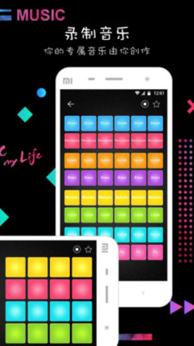 打击垫是专为爱听爱唱爱玩的你设计的一款DJ打碟混音器电鼓垫&节奏器,多功能音乐制作软件,给你不一样的混音音效,带你玩转电音节奏。只需手指轻轻点击彩色键盘,即可敲出你喜欢的DJ电音节奏,在家也能嗨到爆,随时随地录制属于你的打击乐!