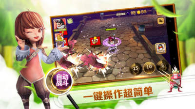“One touch”特色,一键操作极为简单,使用手指触摸的操作方式上手门槛低,单场战斗的时间很短,更可选择自动战斗模式,充分利用碎片时间,为中国用户带来爽快的休闲游戏体验。