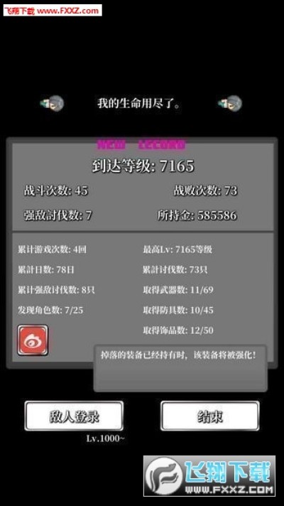 《勇者轮回物语》这款游戏中,它只有10天的寿命,不小心打输的话,还会被扣3天,时间一到,便进入下一个轮回,经验、等级、金钱全部重置,万幸的是我们还留着装备。你要做的就是帮助勇者摸清加点的规律,不断强化装备,在NPC处延长寿命。当然,死亡不代表一无所有,你可以带着荣耀前往天国,和其他勇士比拼战绩,甚至还能抢走太慢的金钱和装备。快来游戏里试一试,你最多能活上几天?