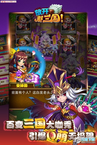 《放开那三国》以家喻户晓的中国古典名著《三国演义》为背景,结合时下最火爆的卡牌类游戏形式,使玩家瞬间回到群雄逐鹿,豪杰辈出的三国乱世,而在这乱世烽烟中,不管是忠义无双关云长、白马银枪赵子龙,还是迷死曹操的大小二乔,统统卖萌来袭,Q到你心动。同时,作为游戏精髓的卡牌收集系统和超高的紫卡爆率,让你战场上猛将如云,后宫里佳丽三千,轻松实现全民当高玩,人人做大神的梦想。