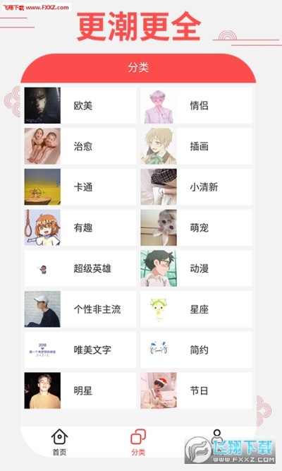 3、提供十多个分类,分类清晰明确,快速定位自己的爱好。让你的头像与众不同,个性十足。