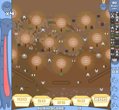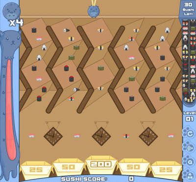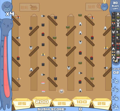 鼠标控制,左键点击放下寿司猫。