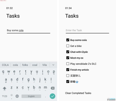 LessPhone 自带一个名为「任务」(Tasks)的工具,实质上就是简单的 To-Do 列表,提供最基础的添加待办事项以及勾选确认功能。当然,在完成了事项之后,你还可以一键清空它们。