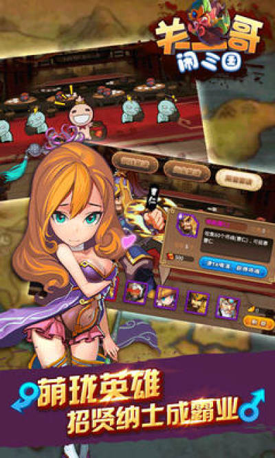 《关二哥闹三国》是一款融合基情卖萌于一体,颠覆传统战斗指令操作,搭配家园系统及角色培养衍生出的新生代RPG策略手游。游戏题材结合三国背景搭建,嵌入幽默搞笑元素,剧情亮点十足;武将设计萌化万千,槽点笑点应有尽有;新鲜玩法层出不穷,只有想不到,没有做不到。如果你还在等待一款上手轻松又不失趣味的游戏,那就快来尝试吧!