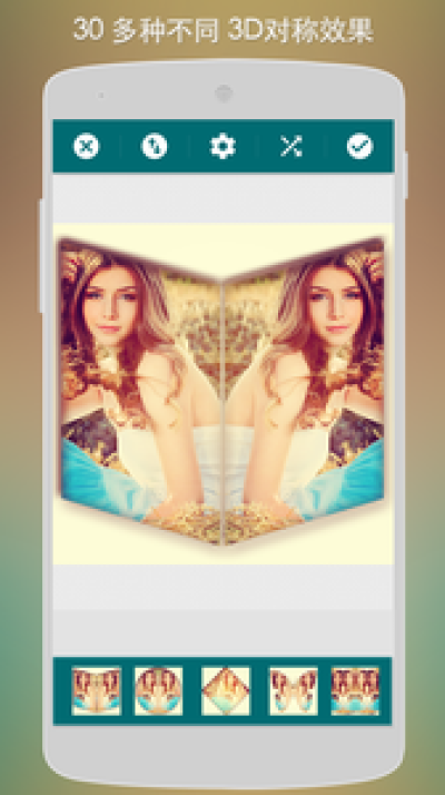 镜面图片帮助您创建镜面效果的图片。通过各种镜面效果,你可以创建左右,上下 对称;左中右,上中下重复等各种镜面效果图片;同时,你可以在镜面效果图上添加各种过滤静,相框来美化图片;最终你可以通过图形混淆,图片拼图等功能来最终合成一幅有趣的图片。