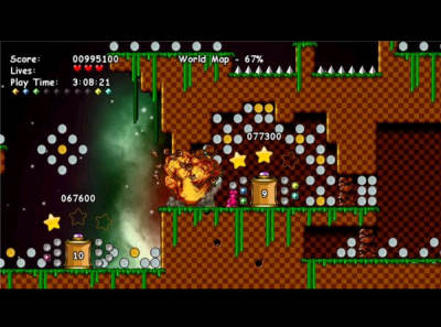 《基因》容量非常小,但是地图却很大,游戏内容很丰富。主角拥有各种很有意思的能力,它可以放置炸弹,或是穿越时空隧道。你可以收集金币及各种宝石,游戏包含了数十个关卡等待玩家的挑战。