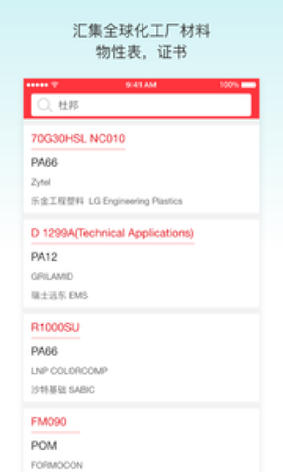 【物性表】 全球化工业材料数据库之一,汇聚全球700多家知名化工厂,覆盖300多个材料种类,十几万个材料牌号,提供每个牌号的物理性能、机械性能、热性能、电气性能等技术参数,并包含每个牌号的UL、FDA、RoHS、MSDS等证书。通过材料搜索引擎,可以通过搜索制造商、商品名、种类、牌号快速找到所需材料