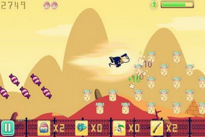 1、点击屏幕上的猪向上飞行,注意躲避各种怪物的碰撞。