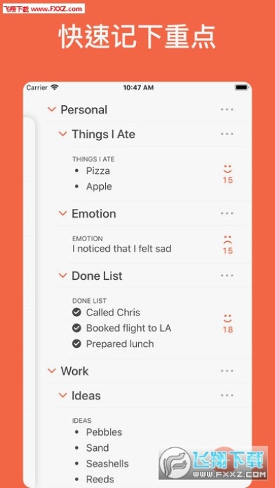 Sunset微日记是一款通过列表来记录与展示日记与想法的微型日记应用,可以快速的输入内容,通过拖拽将条目放入不同的目录与子目录,还能用笑脸与哭脸来表达心情。