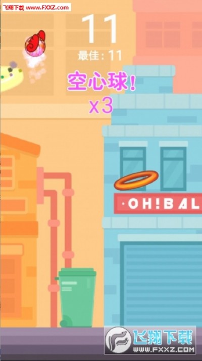 点击屏幕让小球起跳,通过控制点击的时机和频率,调整小球的位置,看准机会让小球入篮而不落地。