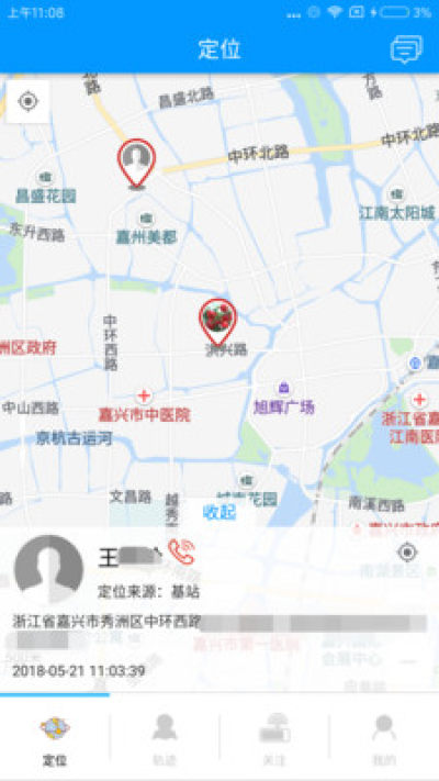 APP支持设备绑定、亲情关注、一键呼叫、定位信息查看、设置电子围栏、轨迹查询。护卫宝报警,通过消息推送的方式实现亲情护卫。