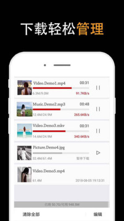 * 下载管理 - 下载开始、暂停、删除轻松管理以及批量操作