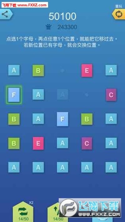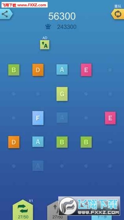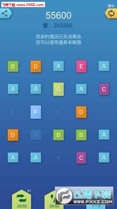 合他个ABC游戏是一款十分好玩的休闲益智小游戏,极度烧脑的排列组合合成类型的玩法,2个或4个字母在交叉列或交叉行上可以合并成下一个字母,当你合成的字母越多,你的分数就会越高,喜欢的小伙伴赶紧来下载这款合他个ABC游戏吧~