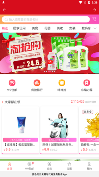 独家超级省、品牌特卖、领券便宜,聚超值,白菜价,熊猫优选,九块九包邮。