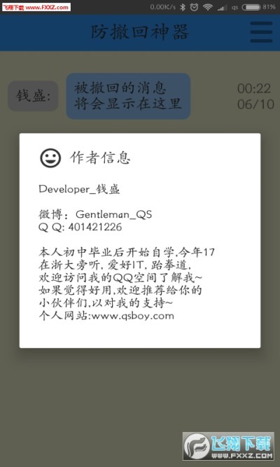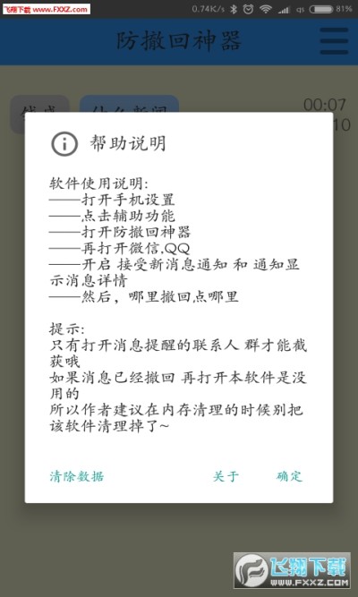 如果消息已经撤回 再打开本软件是没用的哦~所以作者建议在内存清理的时候别把该软件清理掉了~