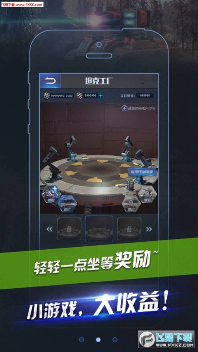 在坦克工厂可以选择坦克建造、租用新型设备加速建造坦克以及解锁新型坦克建造,同时在工厂处可以升级您的个人工厂基地,获得强大的战车建造能力,而建造出的战车可以给予玩家每日积分,这些积分可以每天为玩家带来丰富的游戏资产奖励。