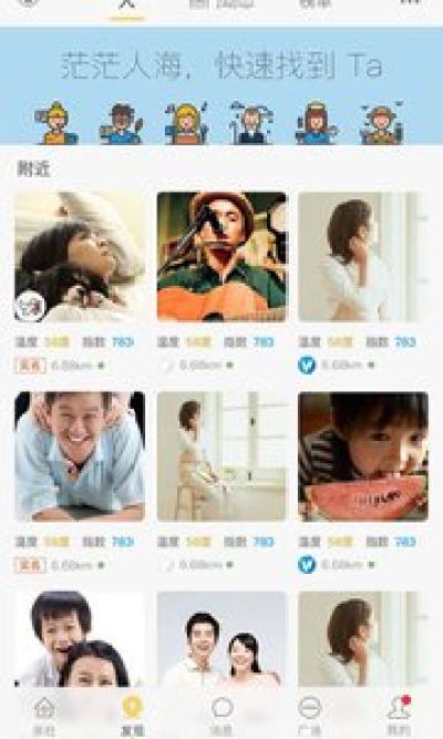 发现:查看附近的人和动态,与附近人,关注或粉丝分享生活的每一个精彩瞬间,记录生活的点滴,发现更多精彩;认识附近人且可交友,听其美声看其美文,撩之礼之友之;