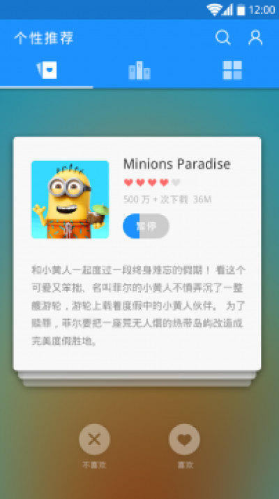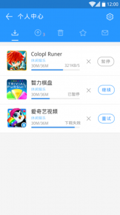 2.个人中心:功能齐全有趣,下载信息、升级应用、喜好收藏等。