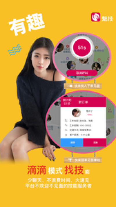 魅技是一款附近人见面的技能、知识、经验即时交易软件。