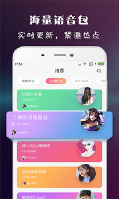 虎虎语音包,震撼首发,这里有吃鸡开黑,撩妹撩汉,网红主播等各种语音包,智能识别语音分享,方便操作,立刻成为朋友之间的语音潮人