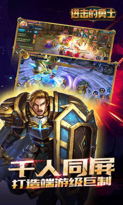 《进击的勇士》由数百人倾力打造的3D动作魔幻MMORPG手游巨作。游戏以异大陆战争与魔幻题材为基础,拥有超清的全3D画质,精美绝伦的地图场景,震撼磅礴的背景音乐,全面构筑起游吟诗人笔下国战史诗,给玩家带来好莱坞级视听盛宴。游戏以恢弘的百家军团王座争霸,同屏万人的要塞之役等史诗级PVP玩法为最大特色。更有唯美华丽的技能特效,数百种霸气的神宠幻兽,让你尽情享受杀伐的快感,沉迷于热血的端游级战斗之中。