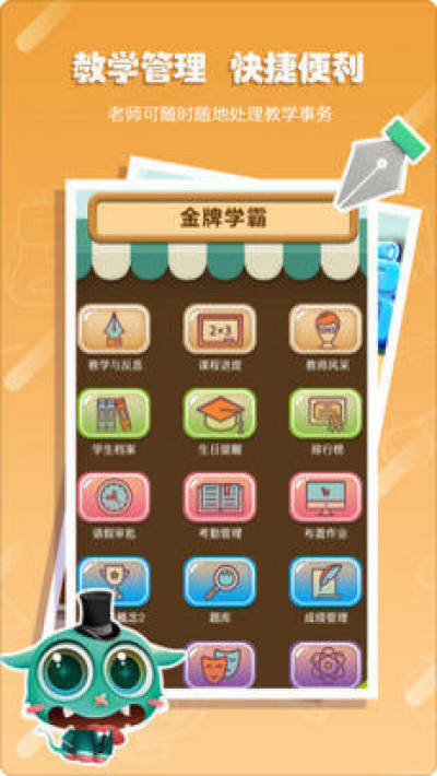 在【金牌学霸】APP老师端中,老师能够进行管理学生档案、布置作业、考勤、即时通讯、验证红包等工作,让老师的教学工作更加轻松快捷。