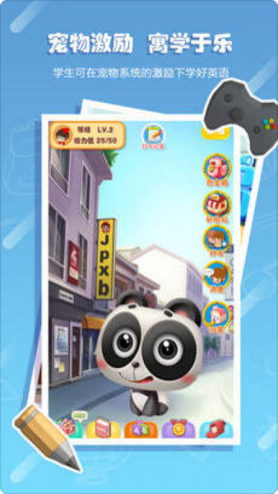 在【金牌学霸】APP学生端中,学生可以一边学习《金牌新概念》二册课程,一边养可爱的宠物。其中还包括题库、作业等模块,能够让学生在享受养宠物的乐趣的同时,学好英语;