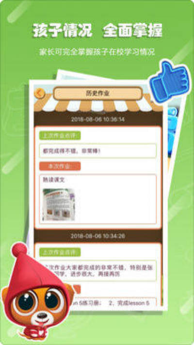 在【金牌学霸】APP家长端中,家长可以查看孩子成绩及作业情况、在线请假、评价老师、查看抢到的红包等。方便家长更快地了解孩子在校情况,解决“家校共育”难题。