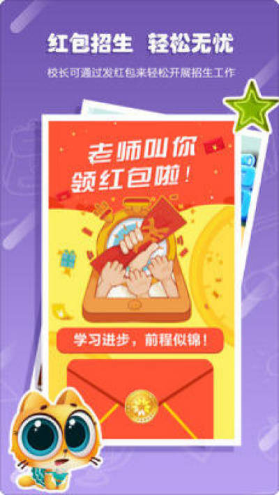 在【金牌学霸】APP校长端中,校长可以进行教师管理、发送和管理红包等功能。既能让校长方便快捷管理教师,又能够利用红包功能开展招生工作。