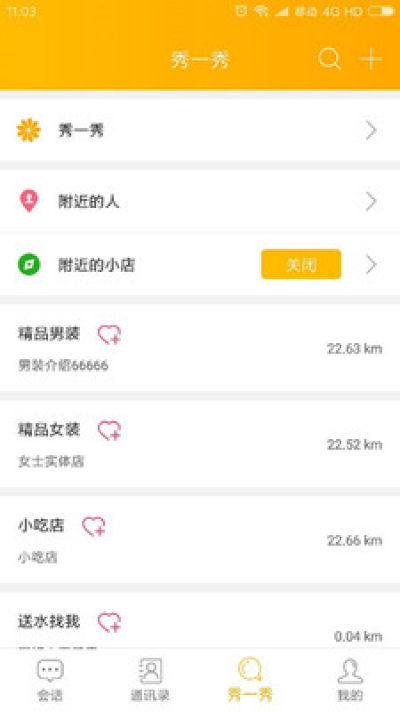 3、秀一秀:朋友圈分享的信息实时更新到附近的动态中,任何人都可以观看,更方便交流与宣传