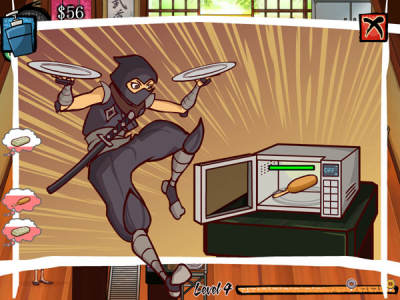 《忍者料理屋》是一款时间管理类的小游戏,游戏将时间管理与忍者元素相结合,玩家将会扮演一名身手矫健的女忍者,在忍者大师的指导下经营料理店。