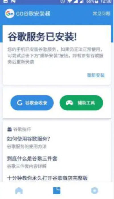 方便好用的谷歌安装器,不ROOT也能搞定谷歌!一键安装谷歌框架、谷歌服务、google play谷歌商店,一键登录谷歌账号,玩游戏不再闪退,用谷歌市场不再纠结。首先支持安卓7.0、7.1的谷歌安装器,检测谷歌网络情况,全面解决谷歌问题。
