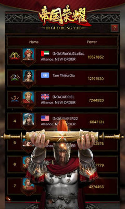 帝国荣耀是一款全球同服的MMOSLG游戏。实时战斗,英雄战斗,联盟战斗等等。 您可以自由选择建筑位置、个性化打造自己的城邦、探索副本寻找资源,加入联盟来进行发展和领地扩张,击败对手的城邦来获得对战胜利和荣誉。 为王座而战!只有一位执政官将成为帝国真正的国王! 您可以:继续更新您的建筑物,训练士兵,招募英雄,研究科技,在世界上采集获取资源,加入联盟并击败世界各地的野蛮人。