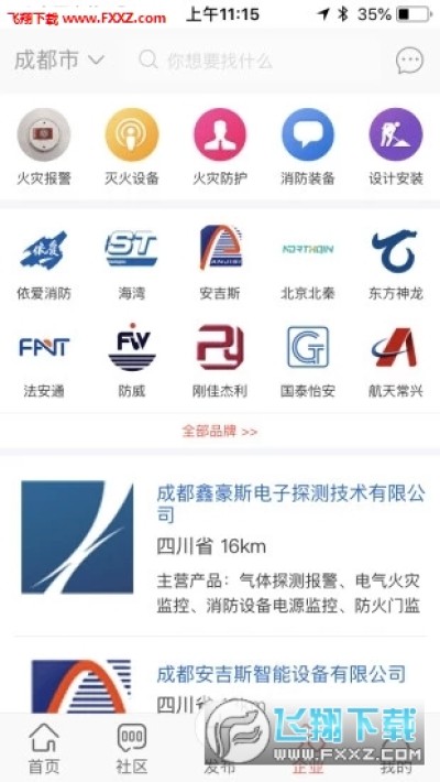 在三岔口消防APP上,相关用户(技术人员、设计人员、施工安装人员、维护保养人员、相关设备厂家)通过手机号码注册,可根据自身的情况,在发布板块发布自己的需求信息和自己可对提供帮助的供应信息(包括:消防设计、消防施工、消防产品),其他用户可根据自身的技能能力和自身的需要,和信息发布者进行沟通,协商解决问题和提供帮助的等相关细节。也可以通过企业板块,查找和了解自己需要企业的信息,找到自己想要的各类消防产品。
