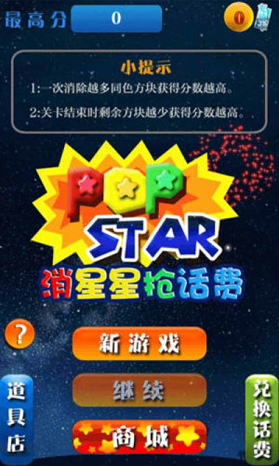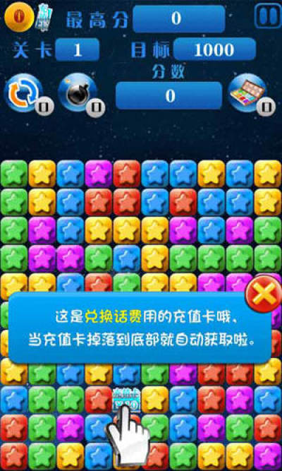 消星星赢话费是一个锻炼脑力的游戏,在游戏模式上和《消灭星星》差不多,不过运营商给玩家提供了更大的福利。如果你玩的够出色,话费任你拿。你需要经过仔细思考,才能得到更高的分数;精心调整每关卡的目标分数,使更具有挑战性。