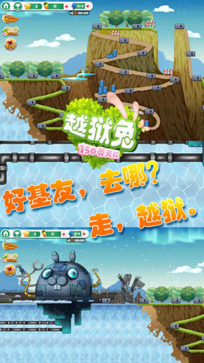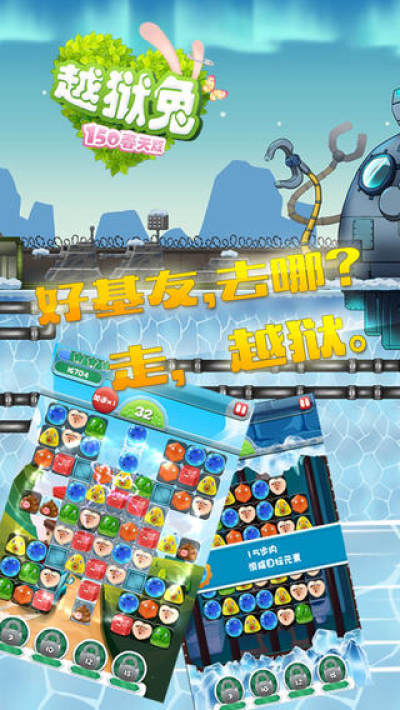 《越狱兔150春天版》是一款以日本搞笑动画《越狱兔》为主题改编的三消休闲游戏。本作集策略、冒险、闯关和爆笑剧情为一体,全新元素红唇便便君嘟着小粉唇的超萌造型,如春日般来袭,让每次闯关都是新的突破,并为你的越狱之旅再添乐趣,让玩家在三消越狱中更加的刺激!此外,游戏中不仅有冒险闯关、BOSS计时、解救小鸡、终极对决等6个闯关模式,又开启便便大战、轮胎突围2个爆笑的全新玩法,也为关关惊险步步惊心的越狱之旅,增加着爽到爆的畅快体验! 玩家在回味原剧的同时更要运用各种策略消除各种组障,收集各种道具,帮助两只追求幸福的“基友”兔子越狱成功。
