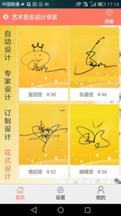 《艺术签名设计专家》app为用户打造免费的在线签名服务,每一位签名设计都非常独一无二,由艺术协会专家在线纯手工设计而成,让你彰显气质!需要的话就赶紧下载体验吧!
