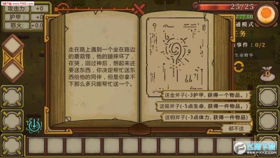 每次前进以及遭遇某些事件时会消耗体力,当体力为0时会发生一些负面事件,所以记得喂饱自己吧。