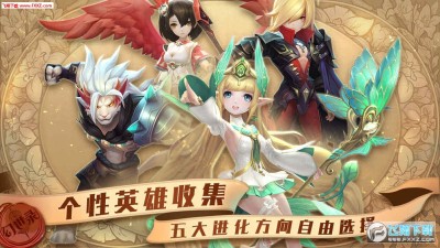 火、水、风、光、暗五大属性共计超过一百个英雄角色供玩家自由收集与养成!每名英雄拥有独立的进化方向,玩家可根据属性克制规则自由搭配自己阵容!