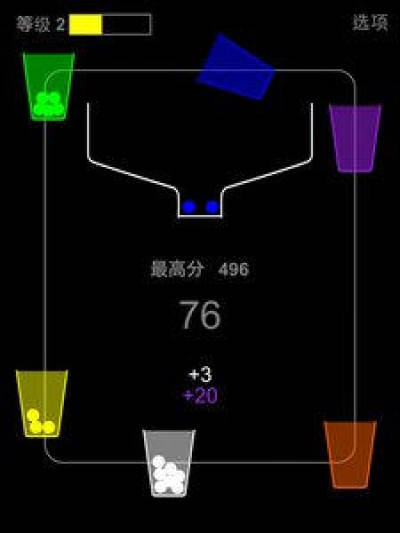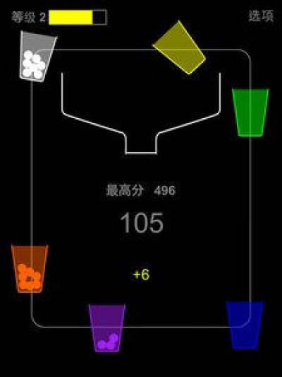 彩色杯子可以生成彩色的小球,接住彩色小球可以获得更高的分数.