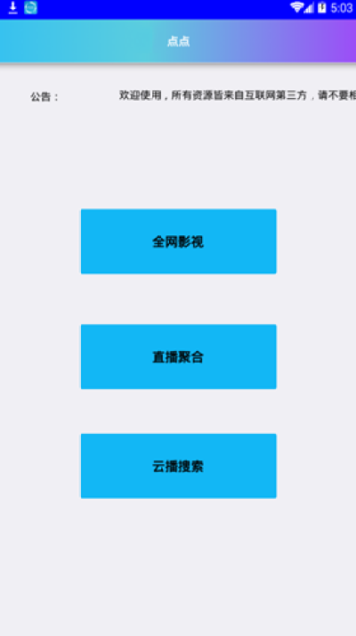 《点点聚合盒子》app集全网影视、直播聚合、云播搜索的一站式影视观看平台,拥有海量全网影视资讯和精彩直播接口,让你一款免费软件即可享受所有福利;喜欢的话就赶紧下载体验吧!