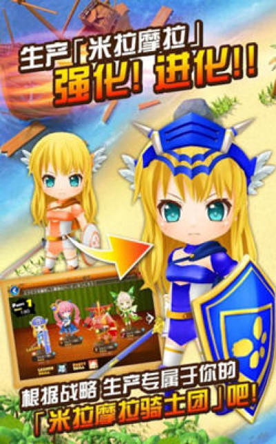 擅长攻守的人类型米拉摩拉、远距离攻击非常在行的精灵型米拉摩拉等等,如何组合运用丰富多彩的「米拉摩拉」是胜负的关键!快来收集「米拉摩拉」,不断强化、进化,根据战略组建自己心爱的米拉摩拉骑士团吧!动作像人类的神奇角色「米拉摩拉」们是胜负的关键。