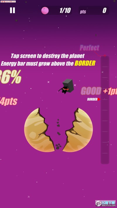 在正确的时间点击屏幕砸碎星球完美一击会获得加倍分数。