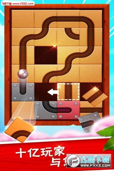 3、将益智拼图与华容道玩法结合,轻松让铁球滚动;